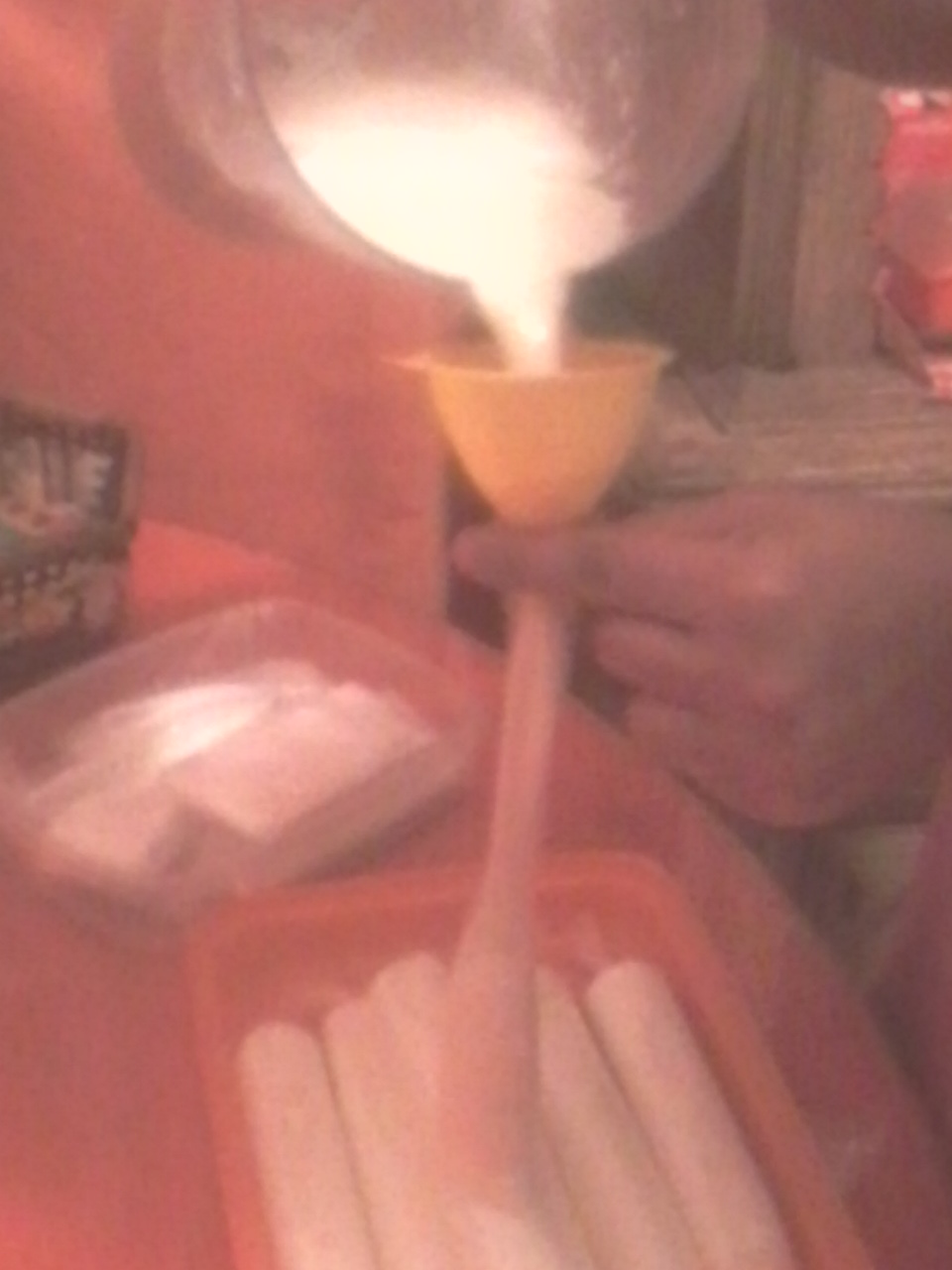 Amigas esse chup-chup é bem simples e rápido para fazer para seus pimpolhos faço toda semana, o de chocolate faço com nescau mesmo o açúcar você faz a medida eu sempre deixo bem docinho para não ficar amargo depois de duro e meu bebê ama, sempre uso 1 litro de leite para cada sabor dá mais ou menos 11 a 12 saquinho do grosso.