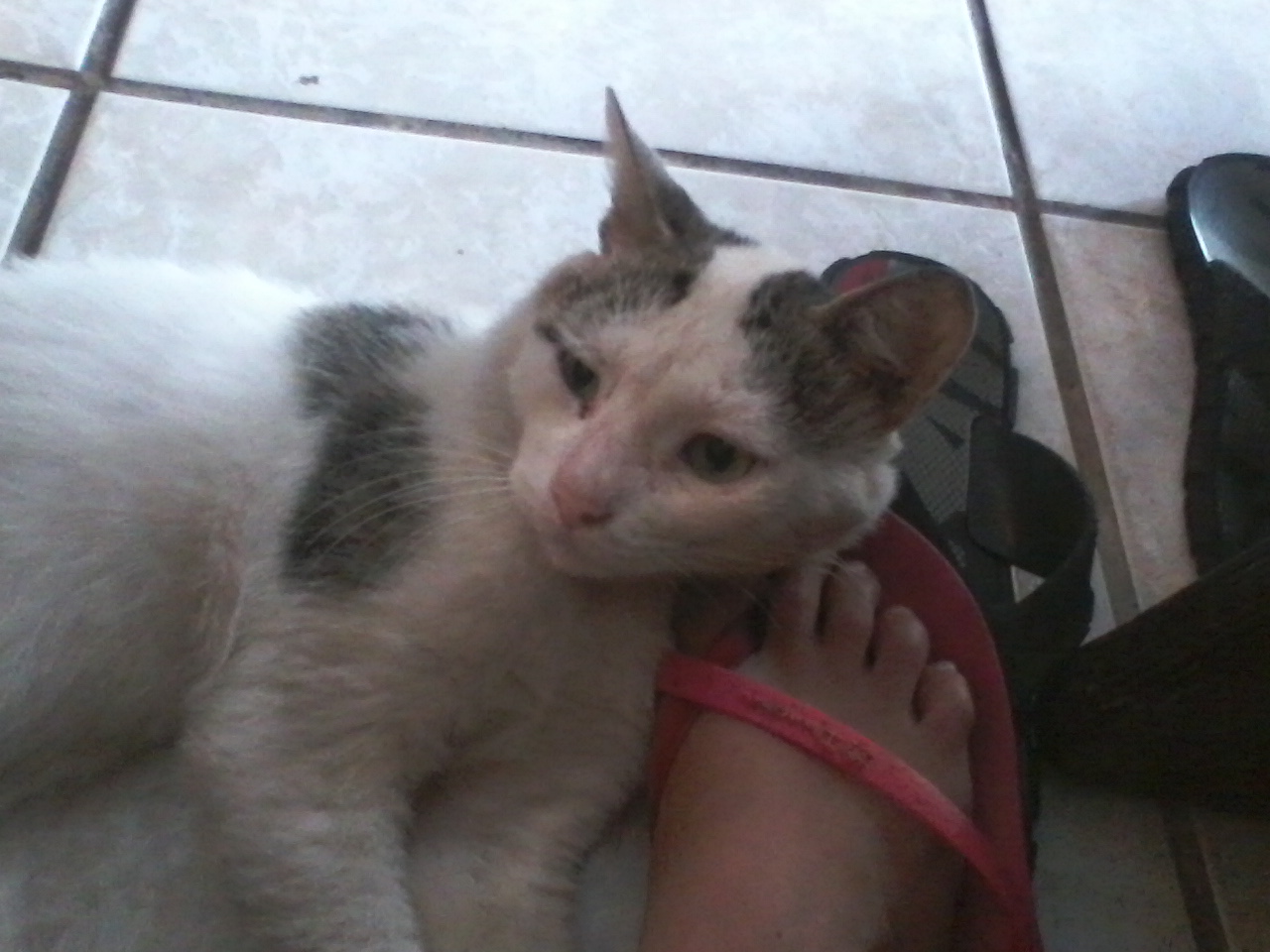 Gentemmmm este é o meu e não meu gatinho , isso mesmo ele ficava lá em cima do meu terraço foi descendo aos poucos e me conquistando com essa carinha de safado, minhas gatas não gostam dele , e acabam sempre batendo nele. Então ! ele foi se chegando de mansinho e acabou criando uma rotina. Sempre vem a tardesinha , ou quando acordo e abro a porta da sala lá esta ele me esperando , todos os dias ele come ração e quer que eu fique uns 5 minutos fazendo carinho nele ai ele vai embora , e quando estou pintando meus painéis fica me fazendo companhia , ainda não sei quem é sua dona , só sei que acho que ele é carente de carinho , ele estava todo machucado e podrinho é bem maloqueiro mesmo agora esta melhorzinho coloquei o nome dele de bafinho rsrsr e tirando a aparência é muito parecido com o lutador Anderson Silva , pois tem uma carinha de macho mais quando mia seu miadinho é fininho fininho e esse maloqueiro acabou conquistando meu coração pois estou completamente apaixonada por ele amomuito!!!! e tem como não amar?